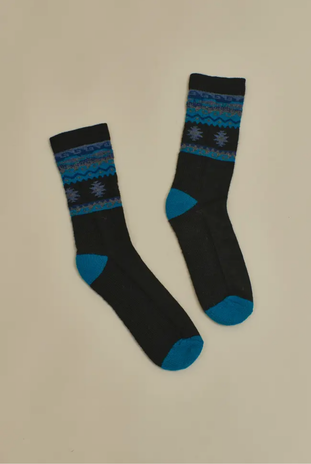 Turquoise & Black Southwest Alpaca Socks | Alpaca Socks | Light Cushion