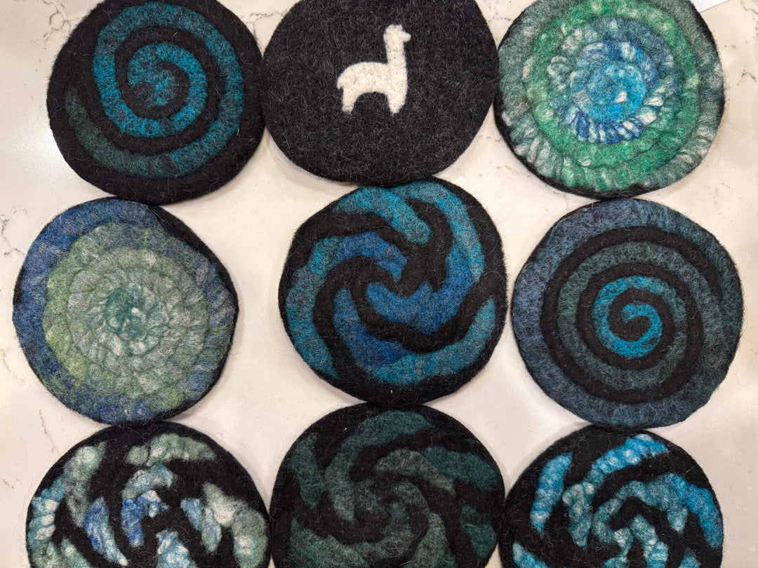 Yarn, roving, batting, felted sheets etc from our alpacas and sheep at Enchanted Farms