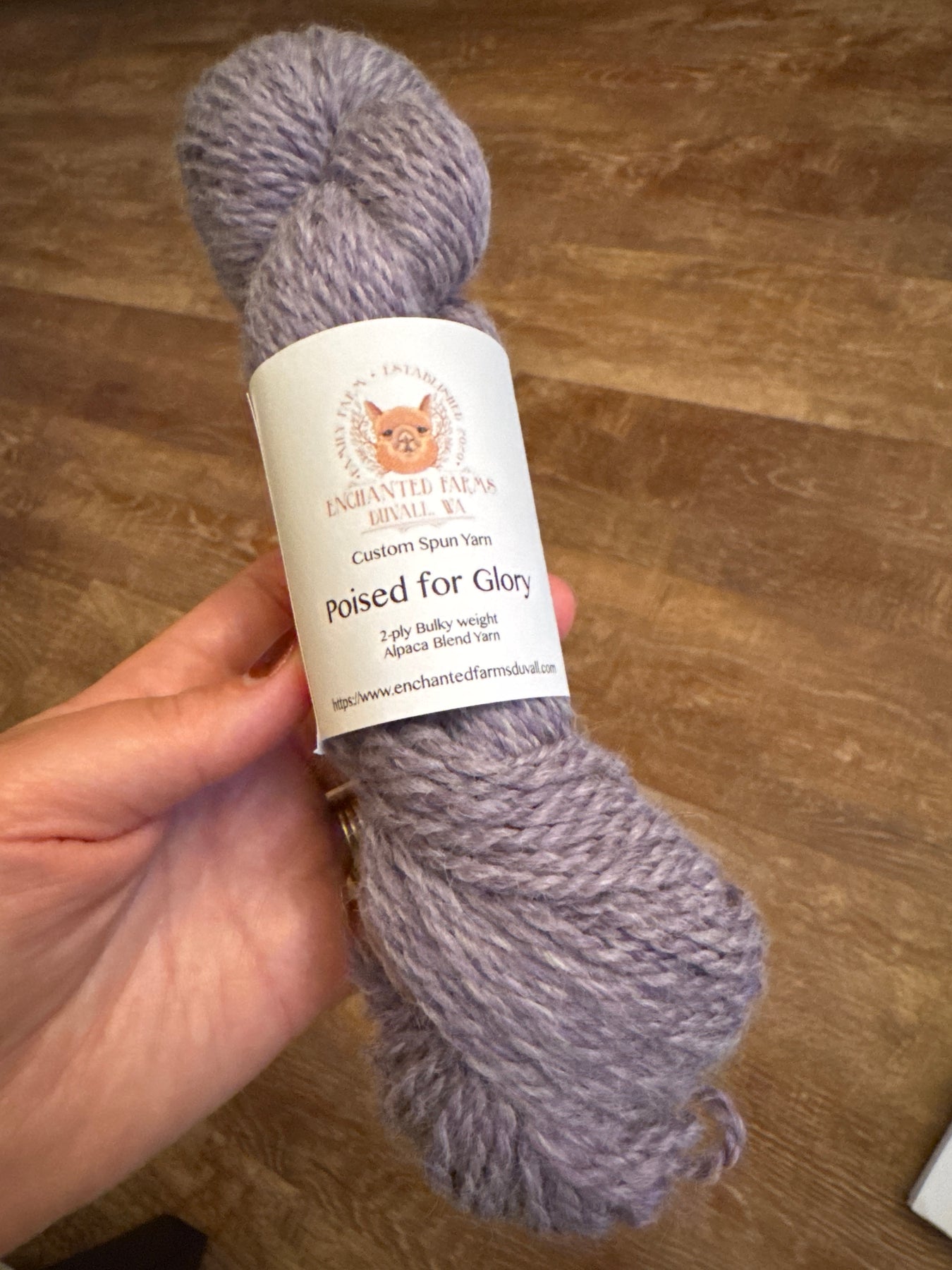 Butterly soft yarn skein from our sweet girl, Poised For Glory. Yarn is ethically sourced (from yearly shearing). 60% Alpaca
