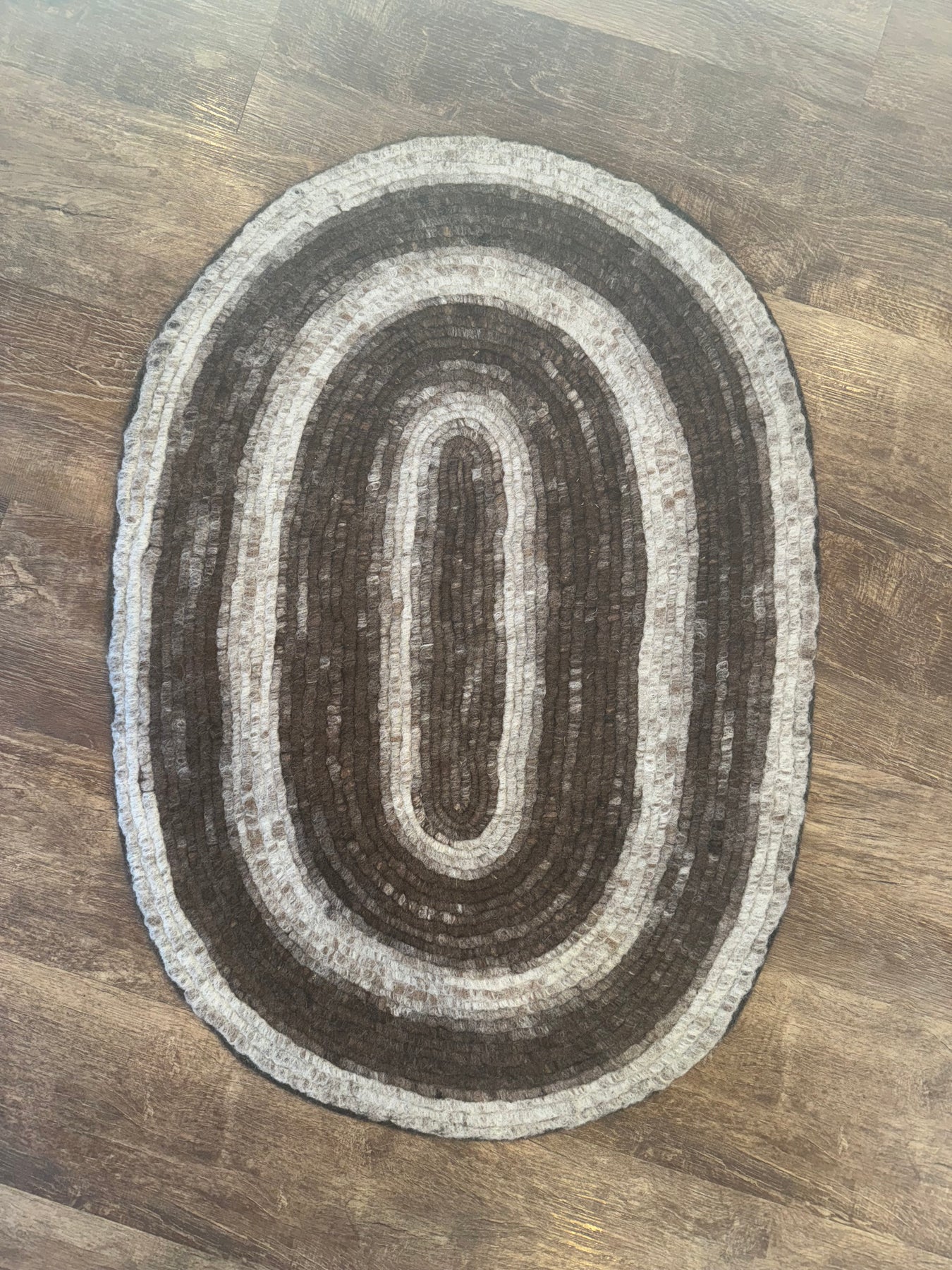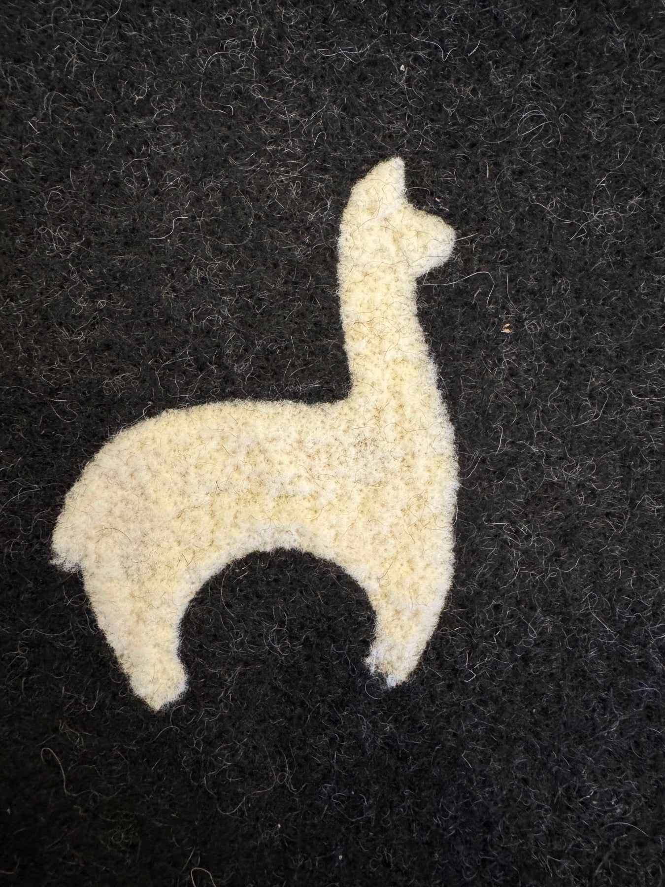 This felted rug is hand made with fiber sheared from Our Alpacas here at Enchanted Farms! Each one is a one-of-a-kind original piece. The top is rug yarn with an extra cushion of felt on the bottom with an alpaca felted on!