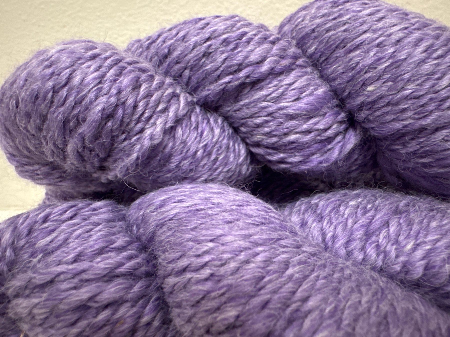 Buttery soft yarn skein from our sweet girl, Gangnam Style. Yarn is ethically sourced (from yearly shearing). 60% Alpaca 40% Bamboo yarn. Purple 2-ply worsted wt yarn.