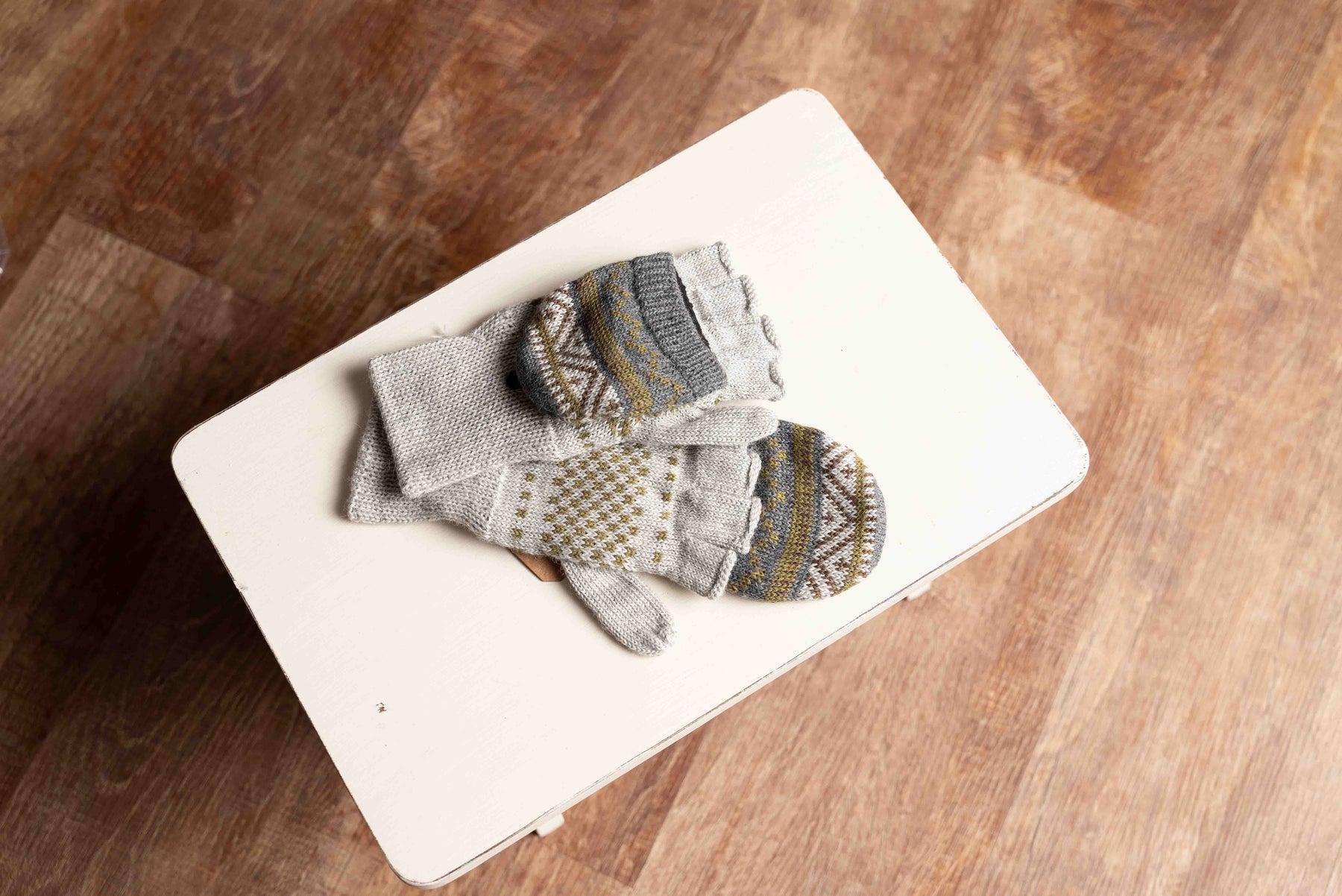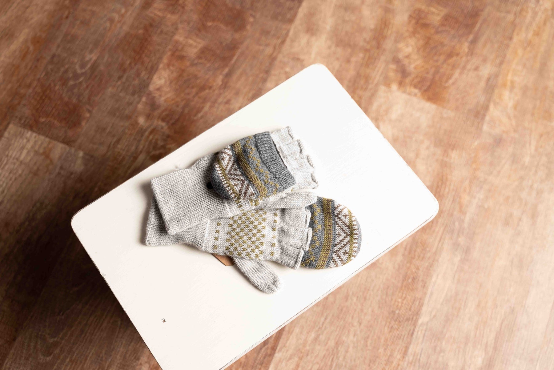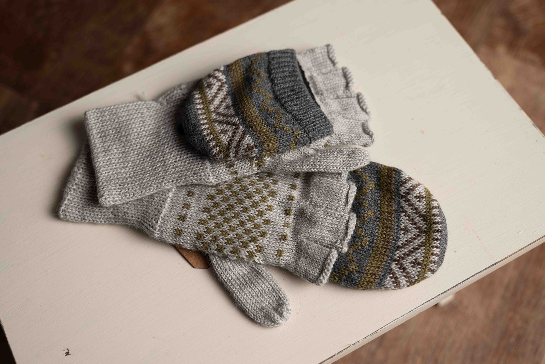 Function meets charm in the Silver Ridge Alpaca Glittens. These flip-top mittens feature a rich geometric knit and hand-embroidered floral accents in golden ochre and sky blue. The soft fleece lining keeps hands toasty, while the fingerless design lets you text, snap photos, or sip cocoa with ease.